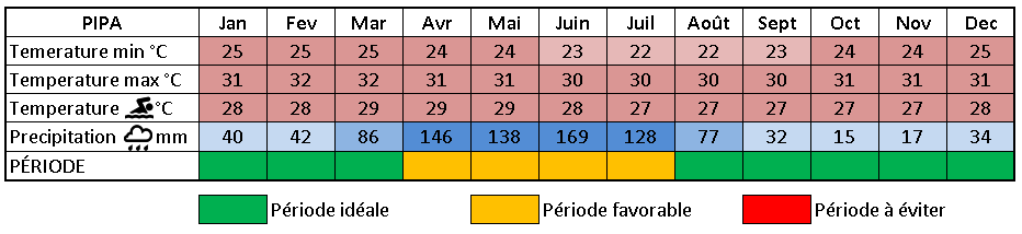 Il fait chaud et la mer est bonne toute l’année a Pipa. Eviter la période de Noel, Nouvel an et Carnaval si vous n’y allez pas pour ces événements spécifiques, les logements sont hors de prix et il y a énormément de monde partout.